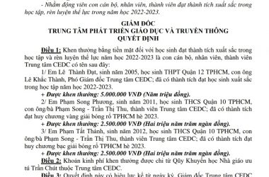 Trung tâm Phát triển Giáo dục và Truyền thông (Trung tâm CEDC): Khen thưởng học sinh xuất sắc là con cán bộ, nhân viên, thành viên
