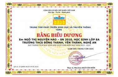 Trung tâm CEDC: Khen thưởng em Ngô Thị Nguyên Hảo