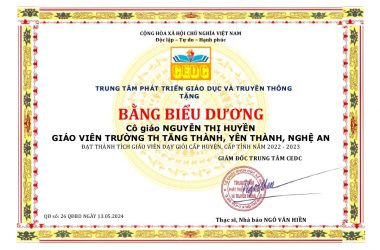 Trung tâm CEDC: Khen thưởng cô giáo Nguyễn Thị Huyền, giáo viên dạy giỏi cấp huyện, cấp tỉnh