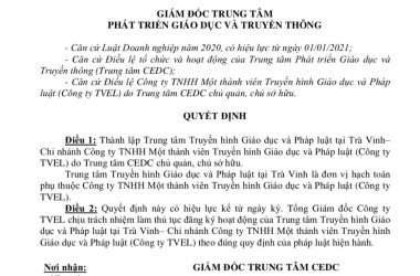 19 Tháng 8, 2024Ngày 19/08/2024, ThS,NB Ngô Văn Hiền – Giám đốc Trung tâm Phát triển Giáo dục và Truyền thông TPHCM (Trung tâm CEDC) đã ký Quyết định số 53 QĐBD/CEDC-GĐTT, về việc khen thưởng học sinh vượt khó hiếu học. Quyết...